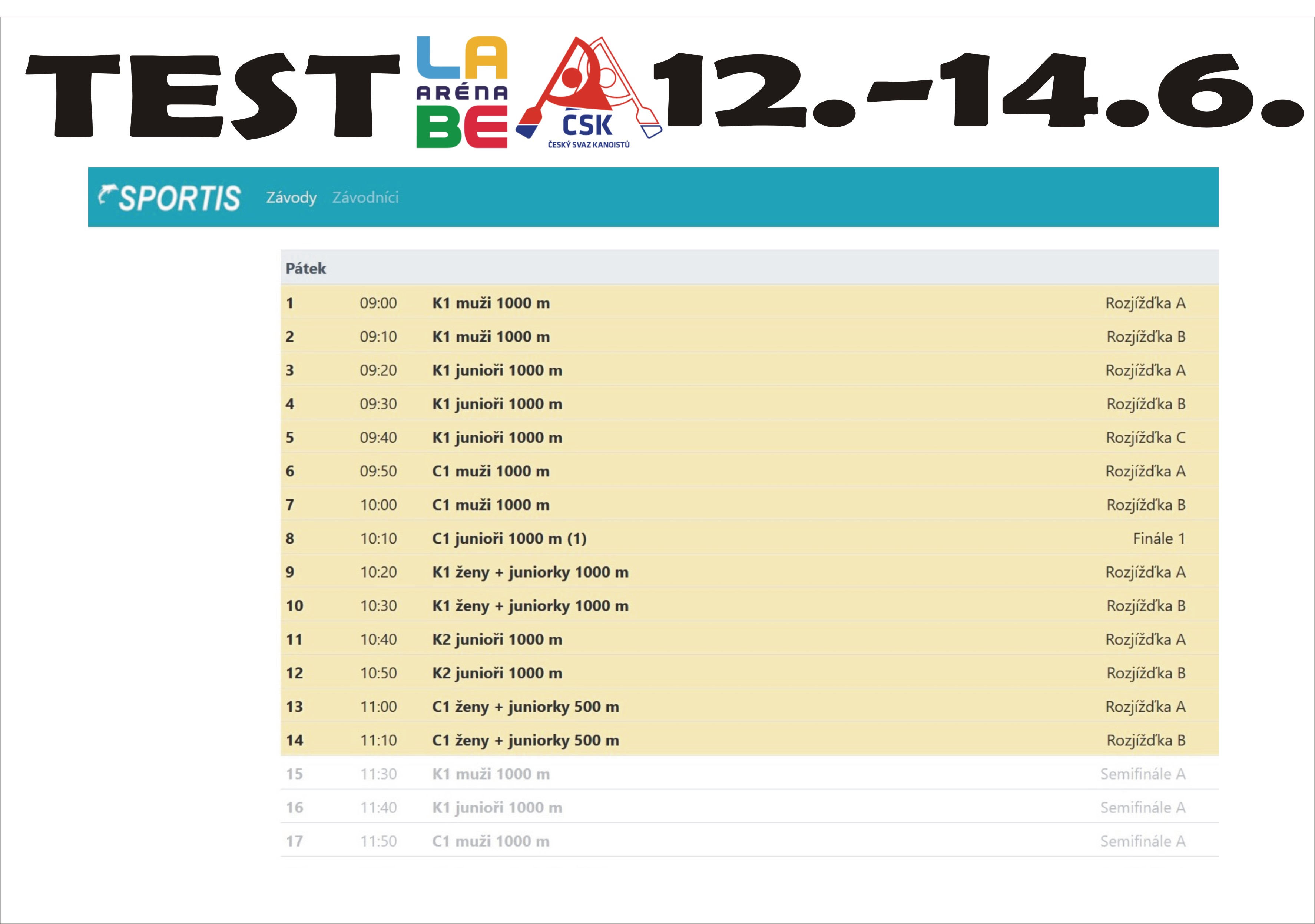 Račický test domácí špičky i s kanoistou Jiřím Zalubilem výsledky